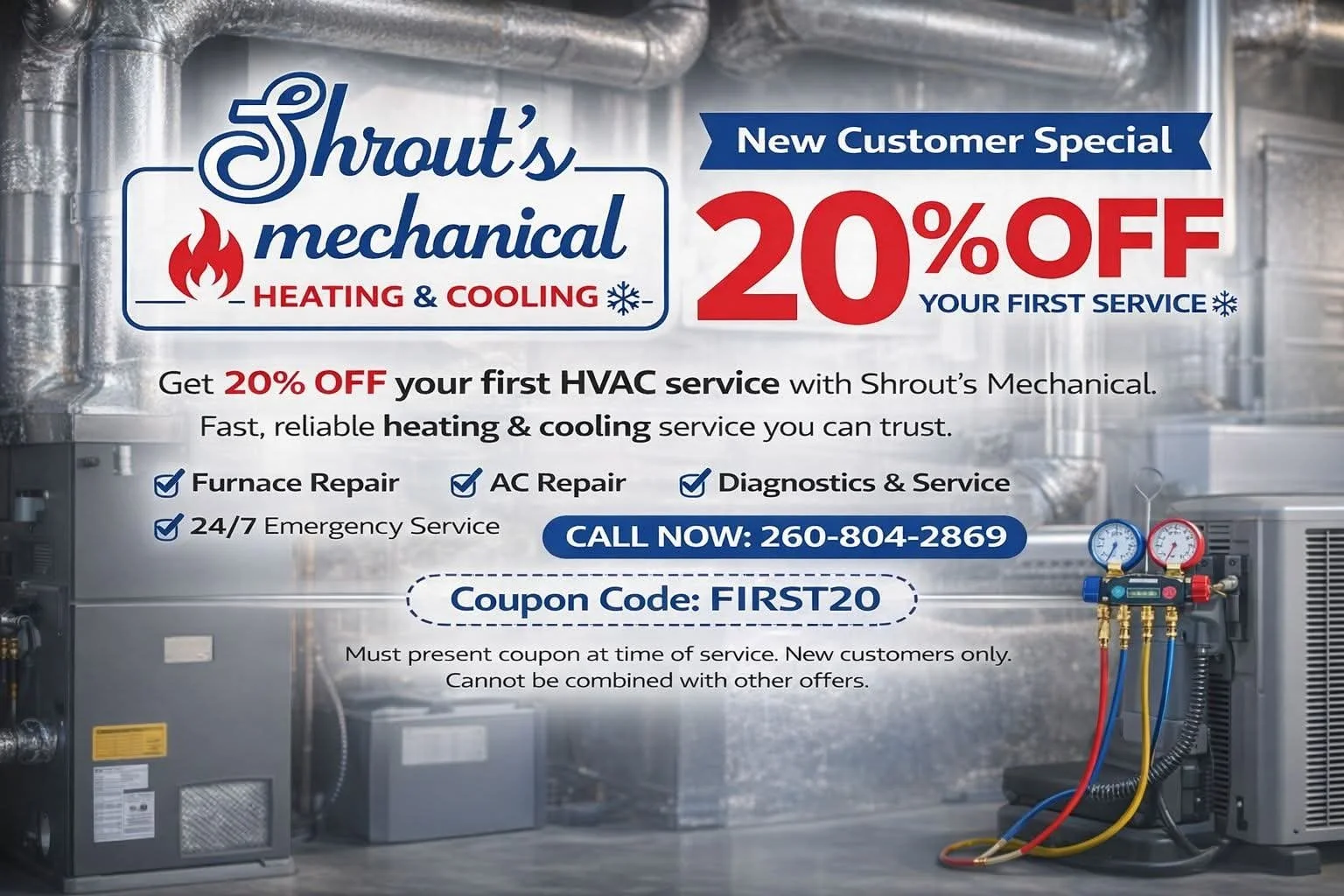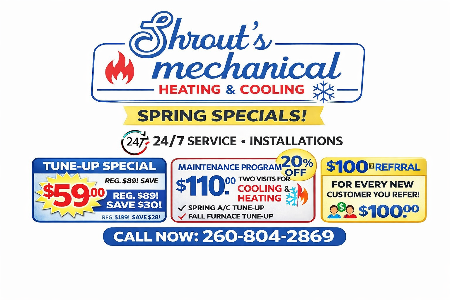 Call Shrout's Mechanical and tell us the problem, your location, and any immediate hazards.